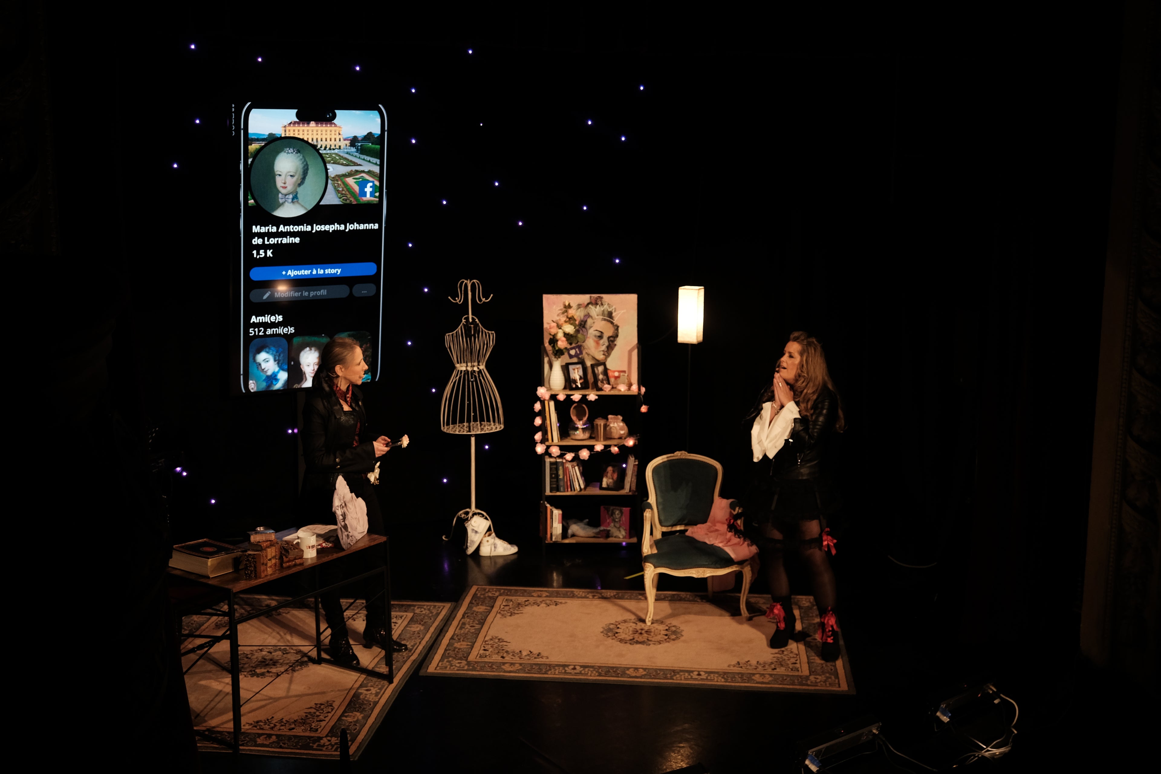 Virginie et S.Pri ont commencé l'aventure par l'écriture, la mise en scène et la création d'une pièce de théâtre : #Marie-Antoinette. L'objectif : raconter la vide la reine de France à travers ses réseaux sociaux !